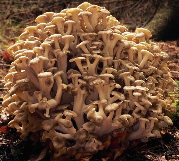 Polyporus umbellatus ("umbrella-like polypore"), also known as Grifola umbellata, is a white-to-gray mushroom that grows in dense rosettes from a single stem. It is found in deciduous woodlands in China, Europe and Eastern and Central North America, growing from dead tree stumps or the roots of birches, maples, beeches and willows.